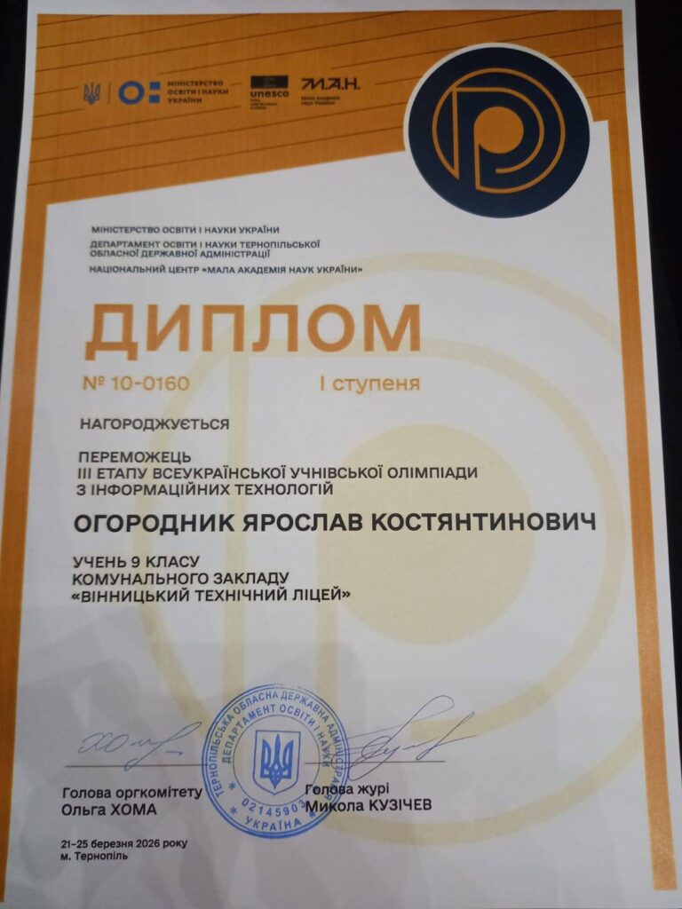 З 21 березня по 25 березня 2026 року в м. Тернополі проходив ІІІ етап Всеукраїнської олімпіади з IT-технологій.